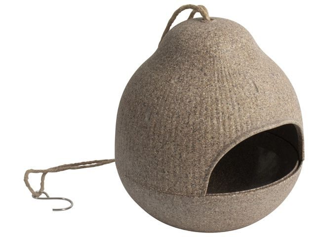Dit elegante, bruine vogelvoeder huisje is gemaakt van bamboe fiber. Je vult het huisje eenvoudig met zaden, nootjes of vetbollen en trekt daarmee allerlei soorten vogels aan. Leuk in je tuin of aan je balkon! Afmeting Ø18×15,5cm.